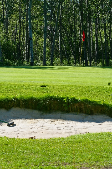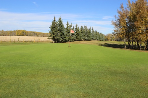 Pro Tip:Easiest hole on the golf course. Green is tucked around the trees on the left.
